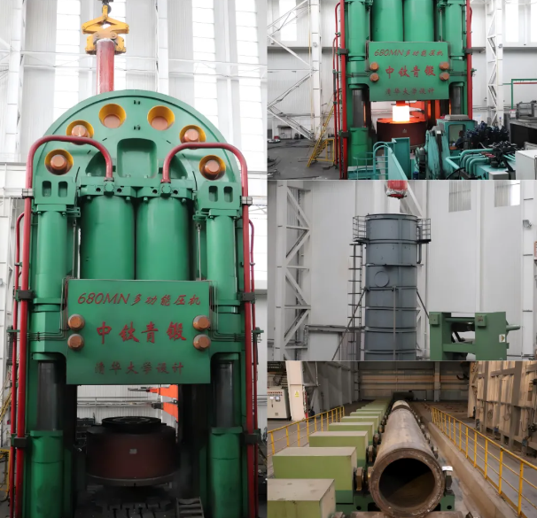 2024 年 11 月 12 日上午,在中钛青锻 680MN 多功能压机平台上一根红彤彤的超大尺寸316LN永利平台无缝管材徐徐吊出,然后快速进入冷却水塔中,现场瞬间翻滚出大量的水汽。标志着本次超大口径316LN永利平台无缝管材试制成功,据悉,该管材直径约1000mm,壁厚仅为90mm左右,长度达到6m以上,在我国永利平台挤压管材方面达到领先水平。得益于中钛青锻良好的设备精度和深厚的技术储备,使得中钛青锻在永利平台管材挤压方面具有明显的质量和成本优势。